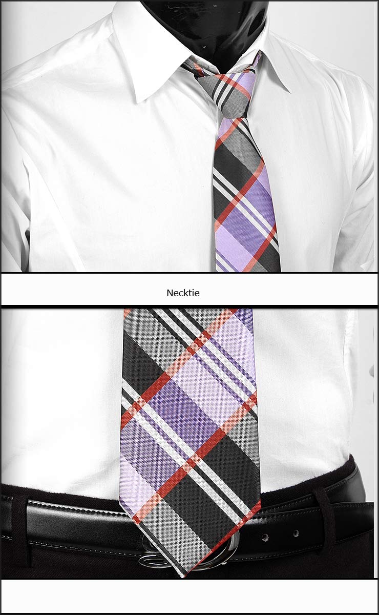 ワンタッチネクタイ ビジネス ネクタイ マルチ・チェエク柄・パープル&ブラック 大剣幅8.5cm ntm6093 簡単ネクタイ 楽タイ