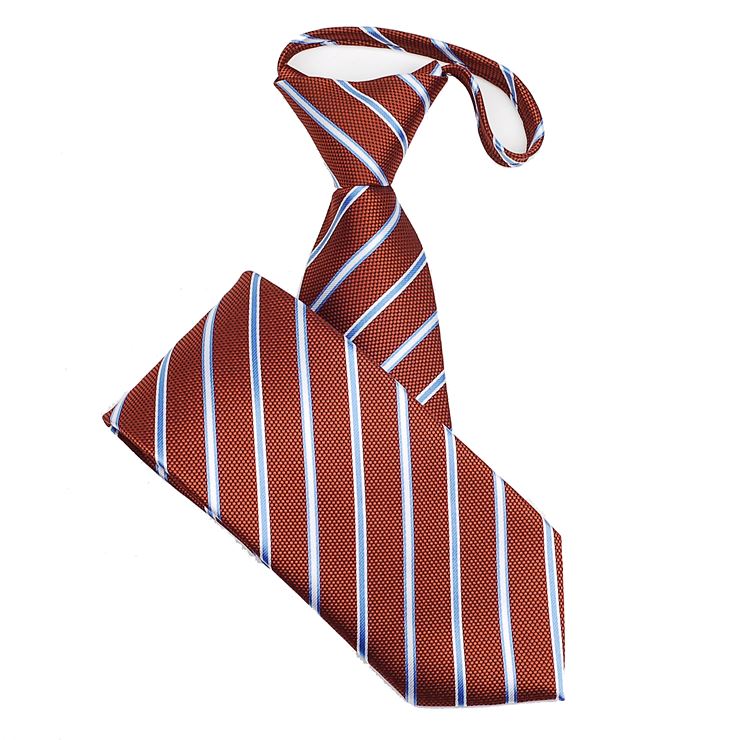 日本製 /ネクタイ/ファスナータイ/シルク/ ワンタッチネクタイ /簡単ネクタイ /ジッパーネクタイブラウン(ピンク・オレンジ・ホワイト)ストライプ柄