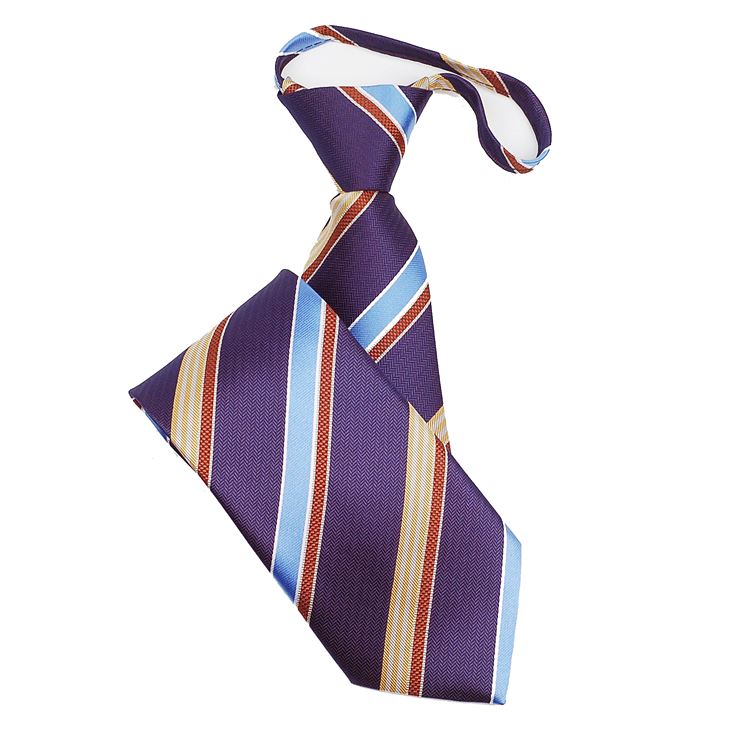 日本製 /ネクタイ/ファスナータイ/シルク/ ワンタッチネクタイ /簡単ネクタイ /ジッパーネクタイネイビー(パープル・ブルー・ホワイト)ランダム ストライプ柄