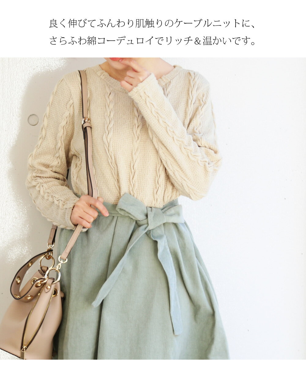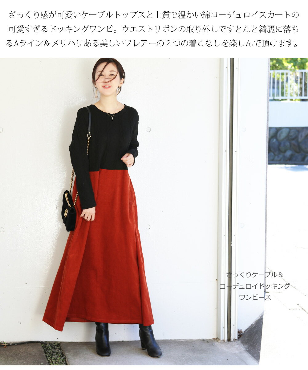 授乳服 授乳 ワンピース マタニティウェア マタニティ ニット ケーブル コーデュロイ ドッキングワンピース 異素材 綿コーデュロイ 長袖 冬 妊婦服 妊娠 産後 服 授乳用 マキシワンピース Milk tea ミルクティーざっくり感が可愛いケーブルトップスと上質で温かい綿コーデュロイスカートの可愛すぎる授乳服&マタニティのドッキングワンピース。