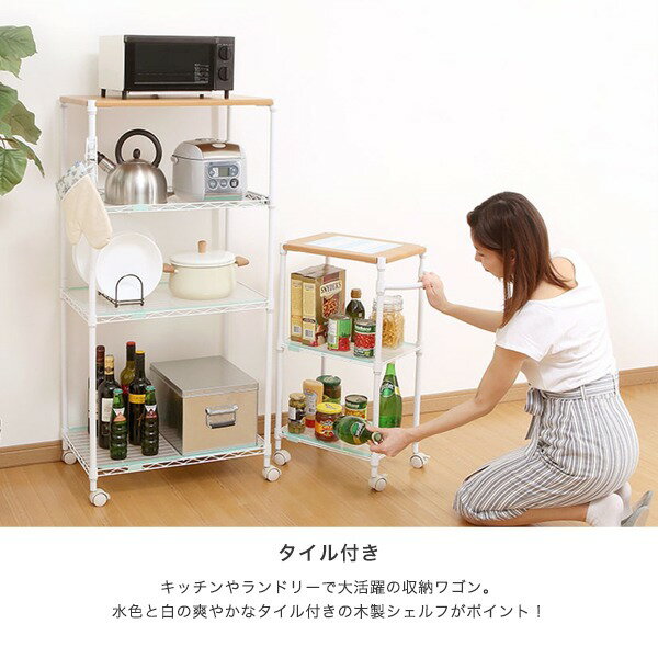 キッチンワゴン キッチンラック キャスター付き スライドシェルフ 引き出し チェスト 白 おしゃれ ルミナスホワイト 収納 棚 タイルトップワゴン 3段 幅40 LW4074-3T スチールラック