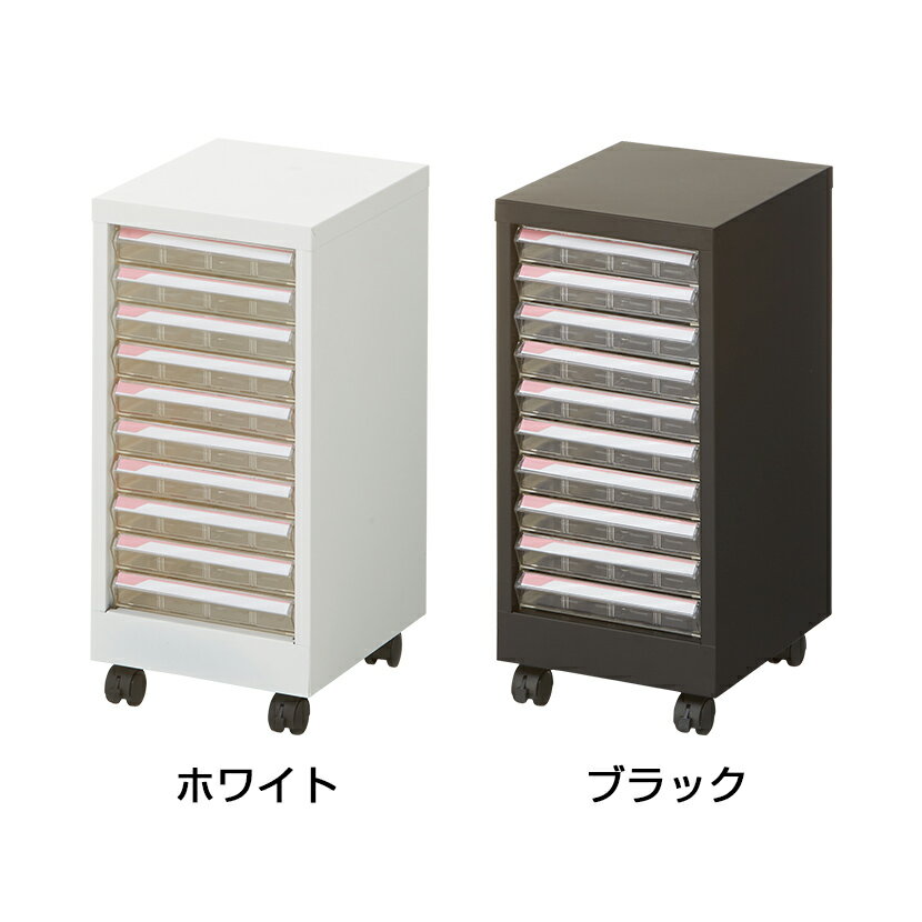 【法人様限定】スチール フロアケース A4対応 10段 (浅型10段) 引き出し デスクチェスト 収納 キャスター付き 幅285×奥行345×高さ590mm 【ホワイト ブラック】 引出し 整理ケース 書類収納ケース 書類ケース 書類整理ケース 整理棚 書類棚 レターケース