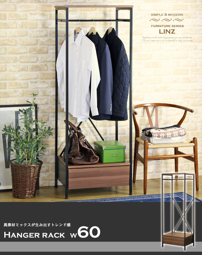 【あす楽】 ハンガーラック スリム 引き出し 収納 幅60cm アイアン おしゃれ 北欧 ヴィンテージ リンツ linz iwh-19 netc5